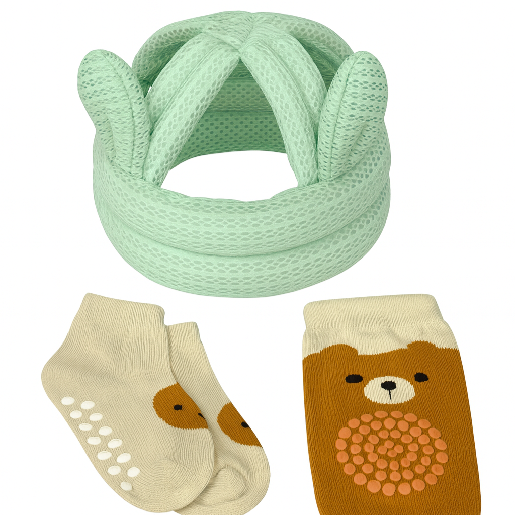 Menos golpes y resbalones desde el primer uso: casco acolchado, rodilleras y medias antideslizantes en un solo combo.